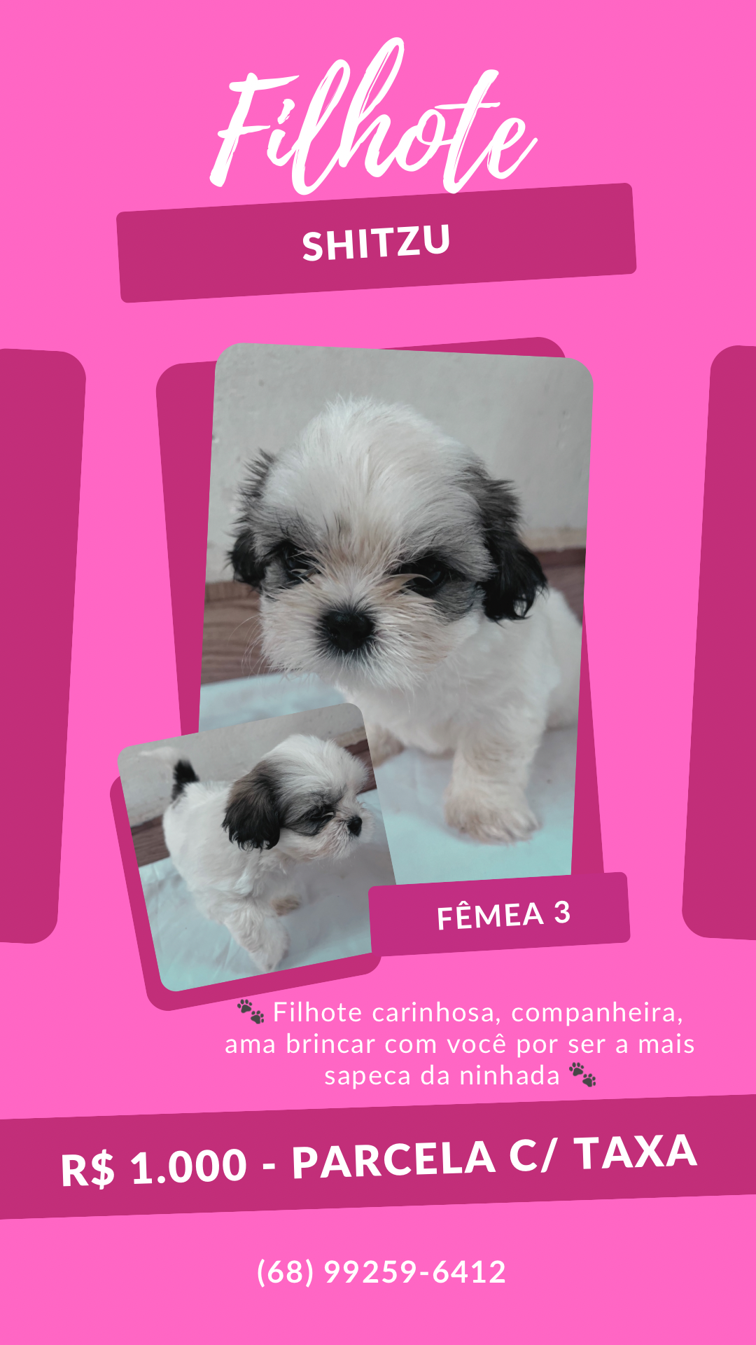 Filhotes de Shitzu fêmeas carinhosas e ótimo para brincar com crianças, ótima companhia! Todas vermifugadas! Parcelo até 12x c/ taxa da maquininha!