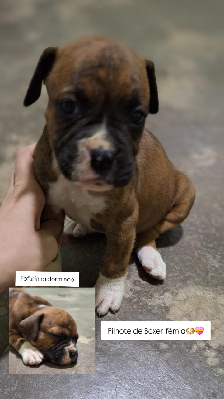 Lindos filhotes da raça Boxer, será entregue com a primeira vacina importada, vermífuga do e totalmente desparasitado. Filhotes na cor tigrado escuro e claro com o colarinho branco, pais no local de ótima genética, entrego em qualquer lugar é só combinar o valor do frete, até 120 km da minha cidade Surubim não paga nada.
